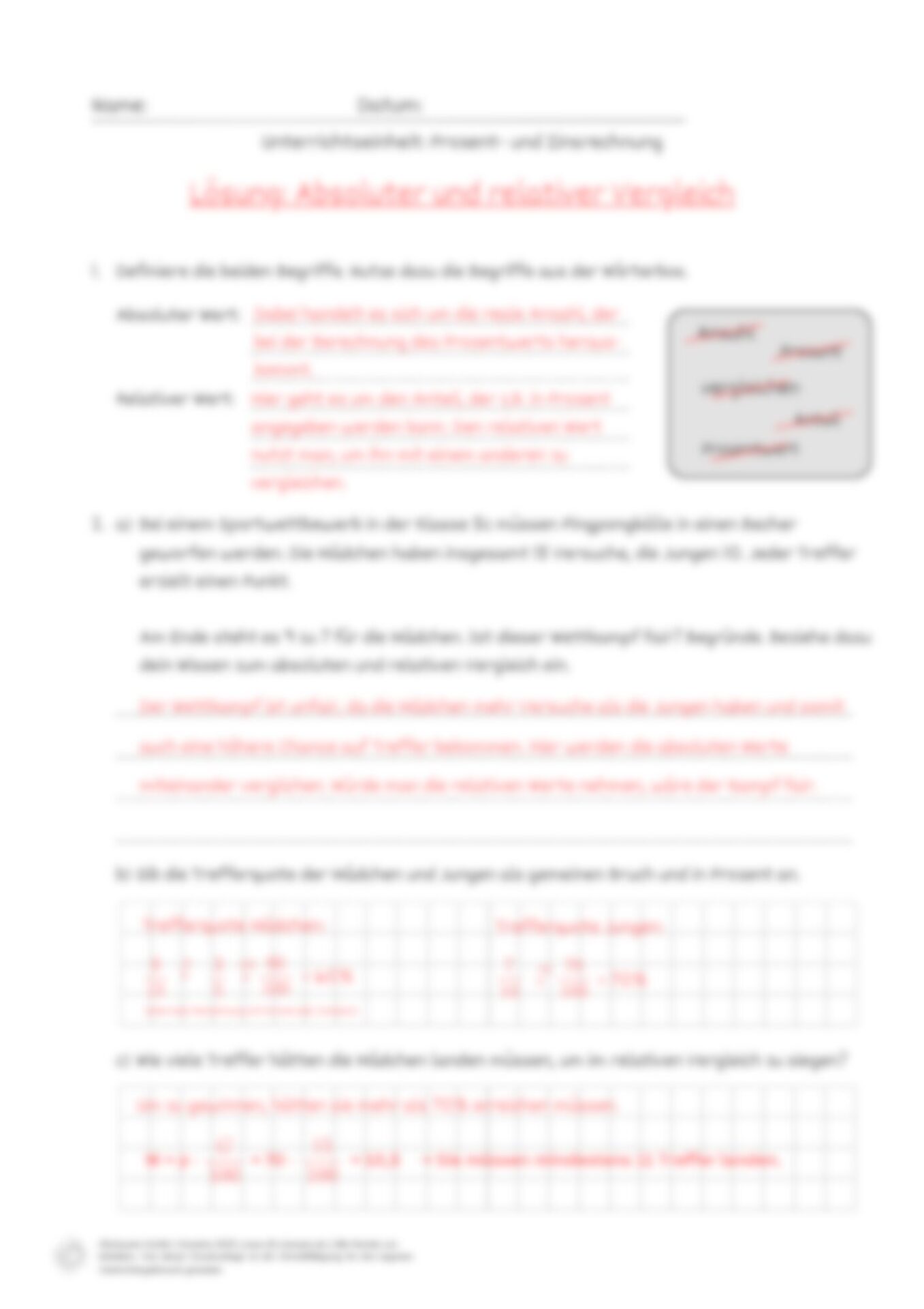 Arbeits- und Lösungsblatt zum Lernvideo „Absolute und relative Werte vergleichen“