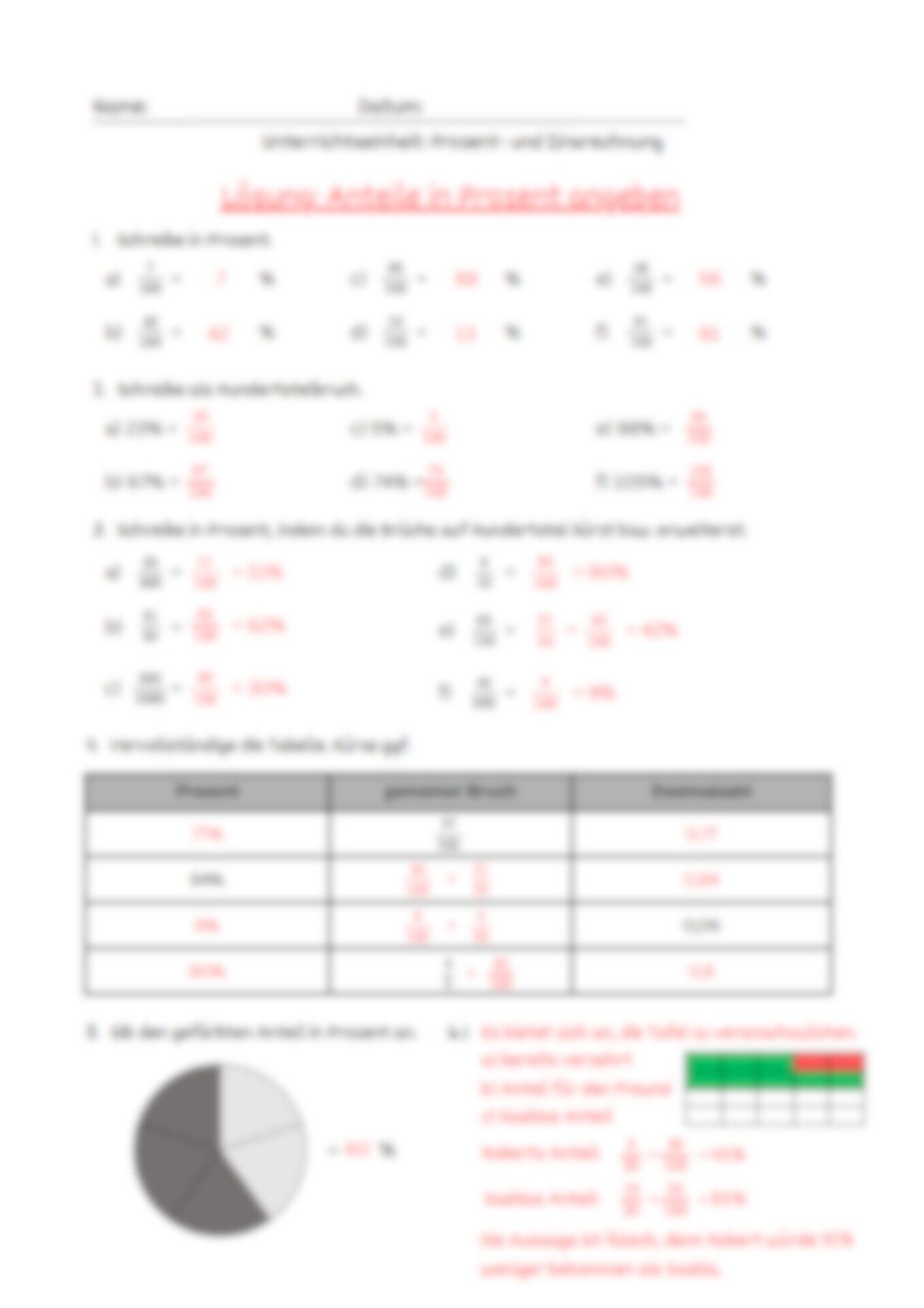Arbeits- und Lösungsblatt zum Lernvideo „Anteile in Prozent angeben“