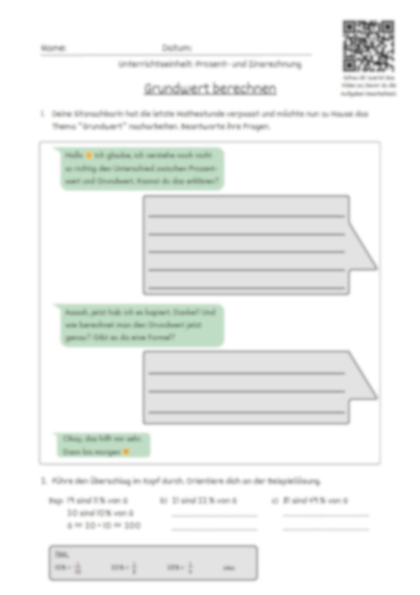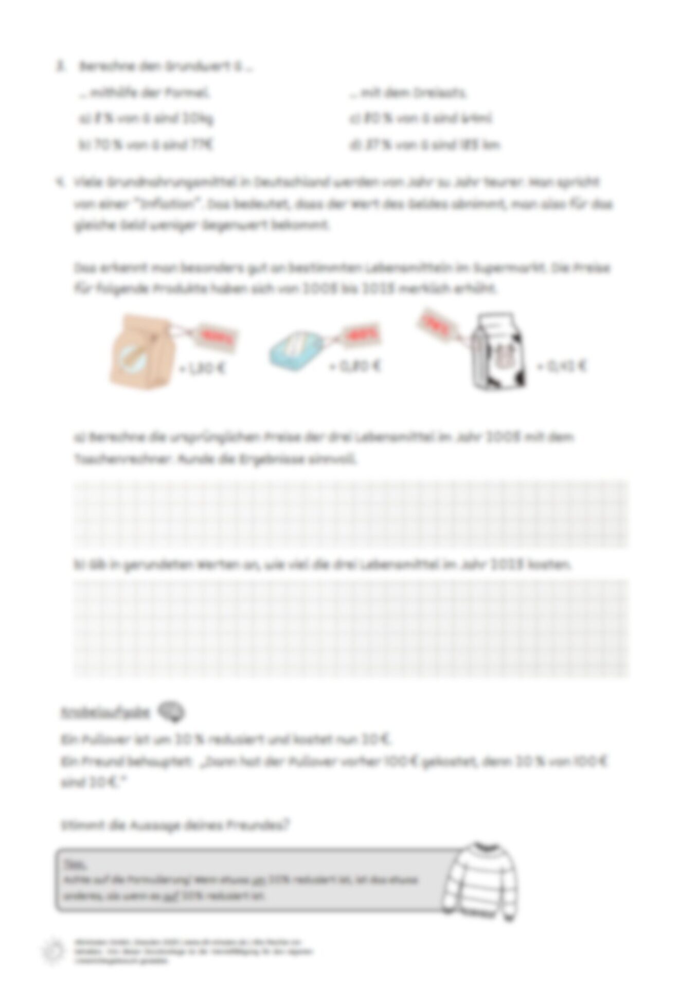 Arbeits- und Lösungsblatt zum Lernvideo „Grundwert berechnen“