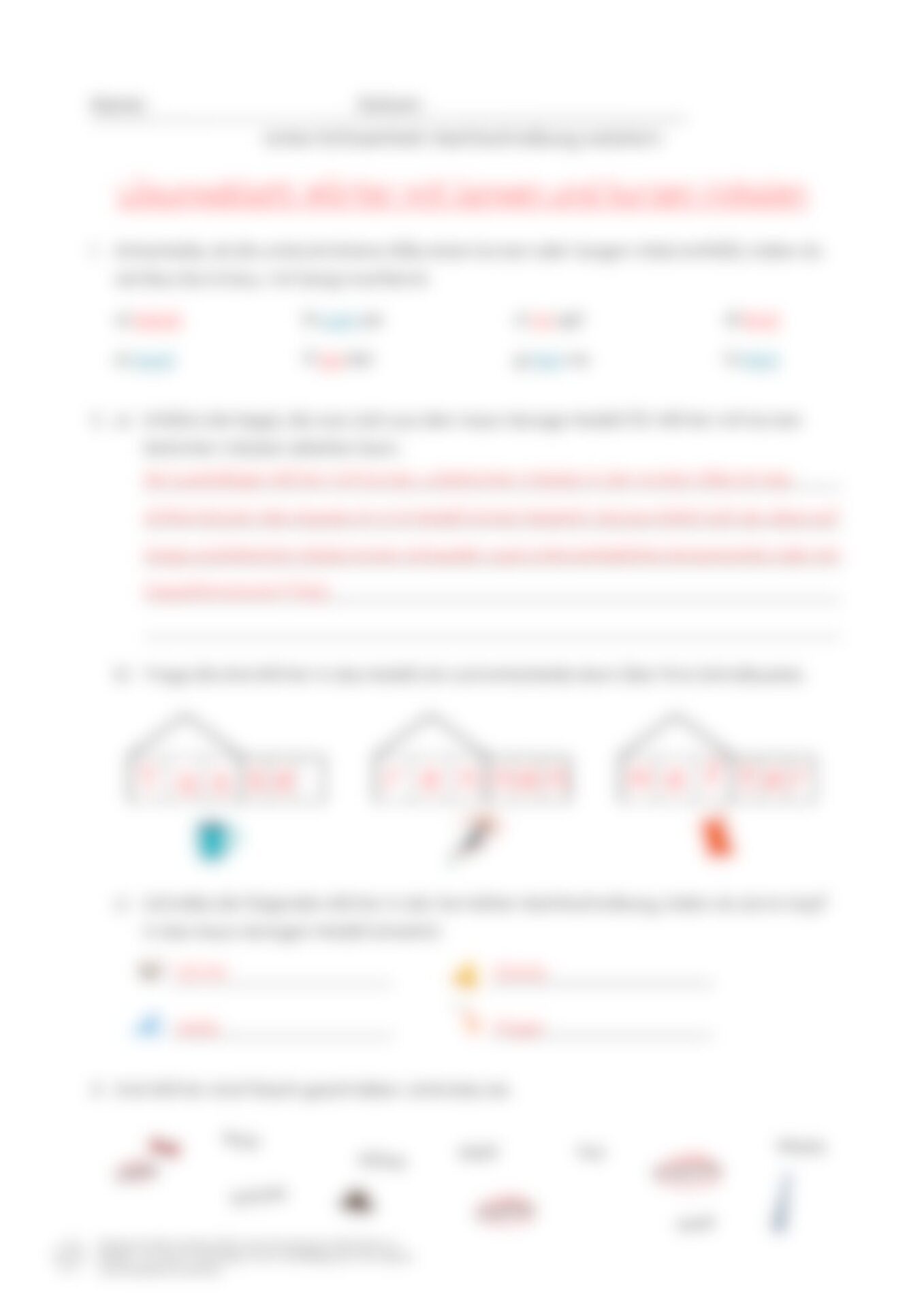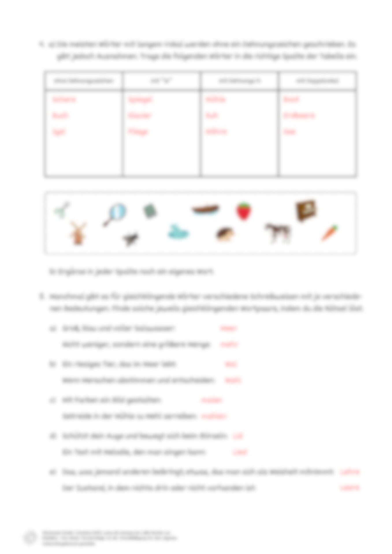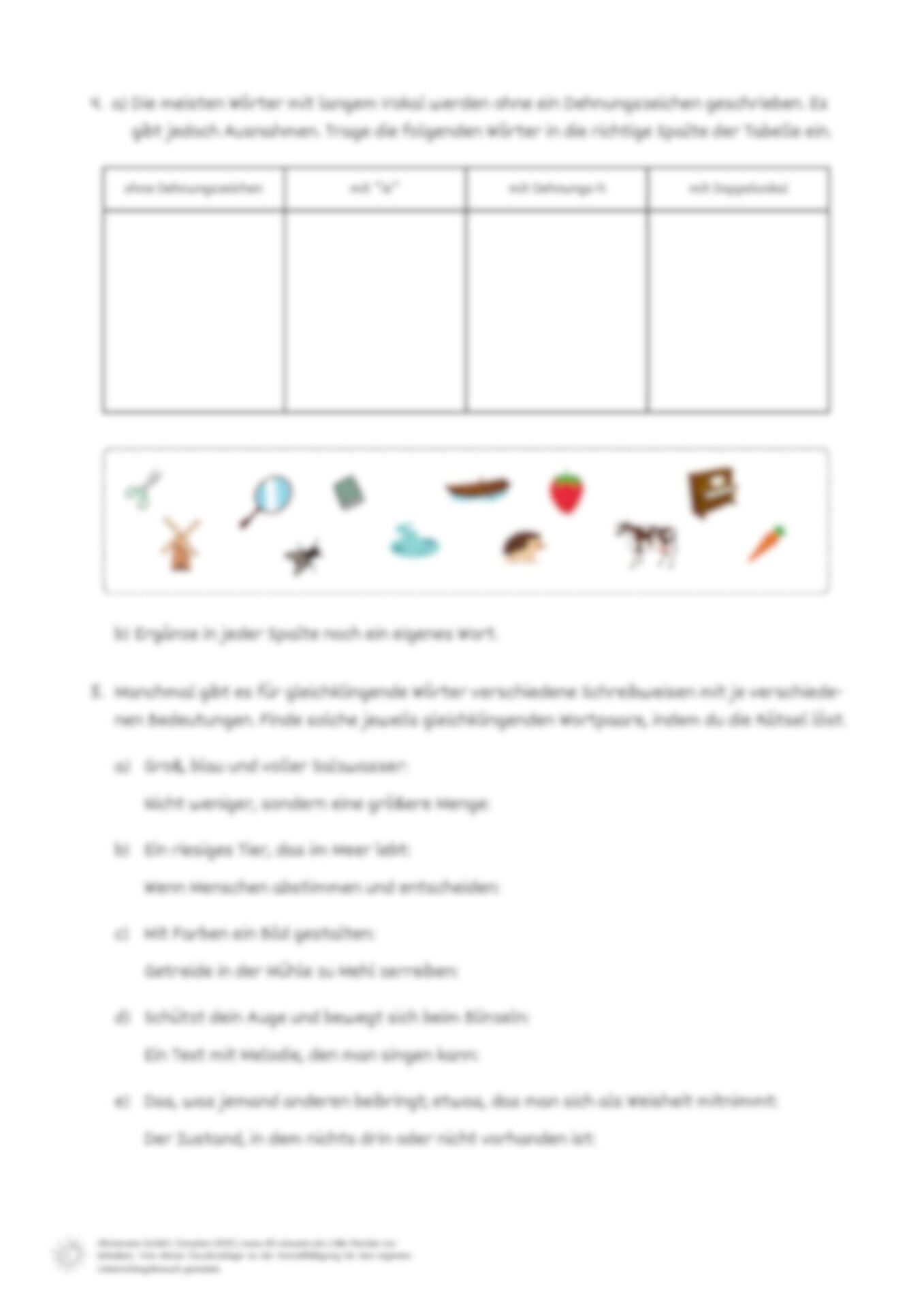 - Arbeits- und Lösungsblatt zum Lernvideo „Wörter mit langen und kurzen Vokalen“