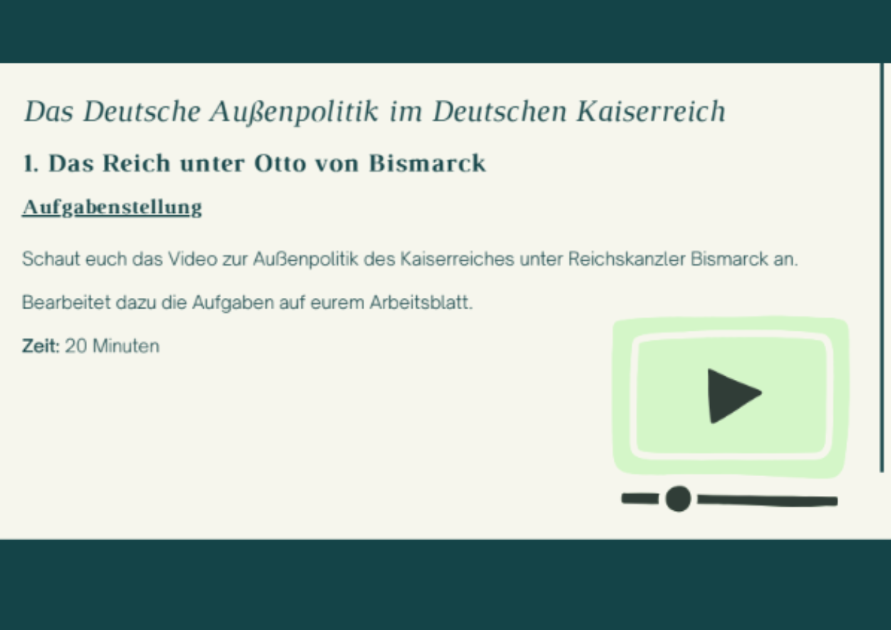 In dieser Sternstunde geht es um das Thema "Deutsches Kaiserreich". Das Unterrichtsmaterial wurde von einer Lehrkraft, wie Dir, ursprünglich für ihren eigenen Unterricht erstellt. Nach dem Upload auf unser Portal wurde es von uns redaktionell aufbereitet und geprüft. Falls Dir dennoch ein Fehler auffällt, gib uns gern Feedback über unsere transparenten Feedbackfunktion oder unser Ticket-System.
