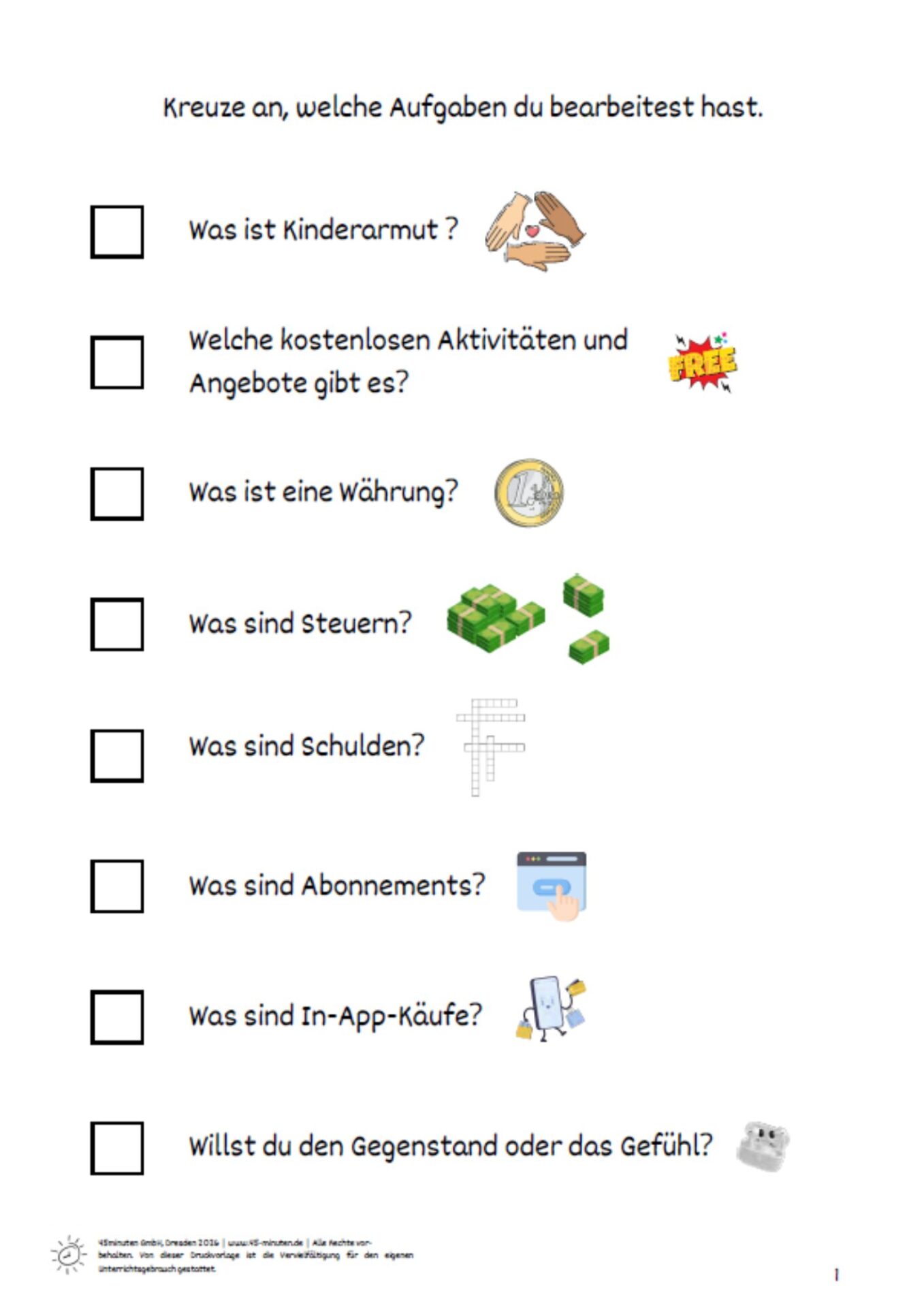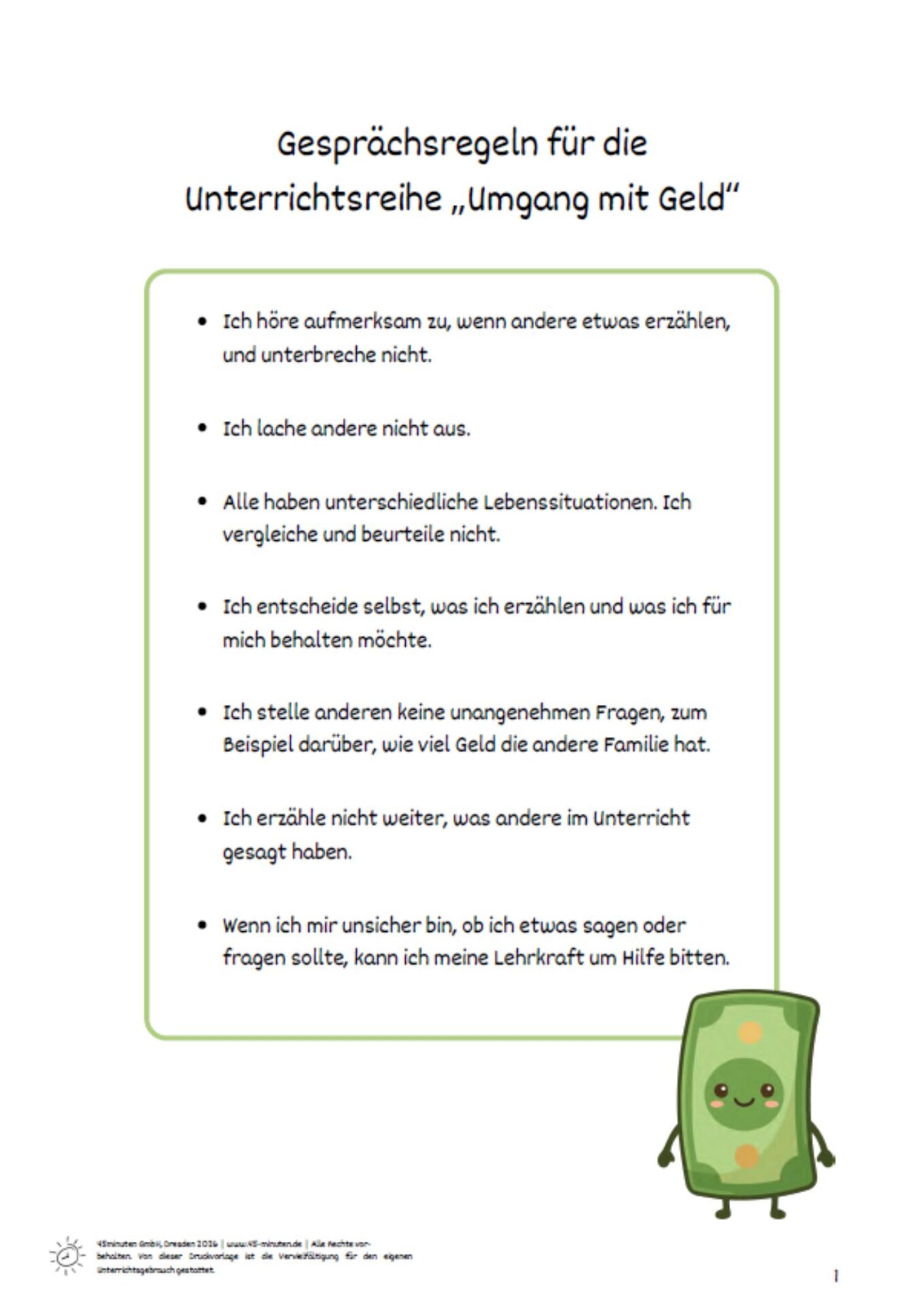 In dieser Materialsammlung finden sich mehrere Unterrichtsstunden, in denen die Schüler:innen ihre Kompetenz im Umgang mit Geld weiterentwickeln. Die Materialien können einzeln oder aufeinander aufbauend eingesetzt werden. Die im Bundle enthaltenen Stunden sind auch einzeln zu finden: