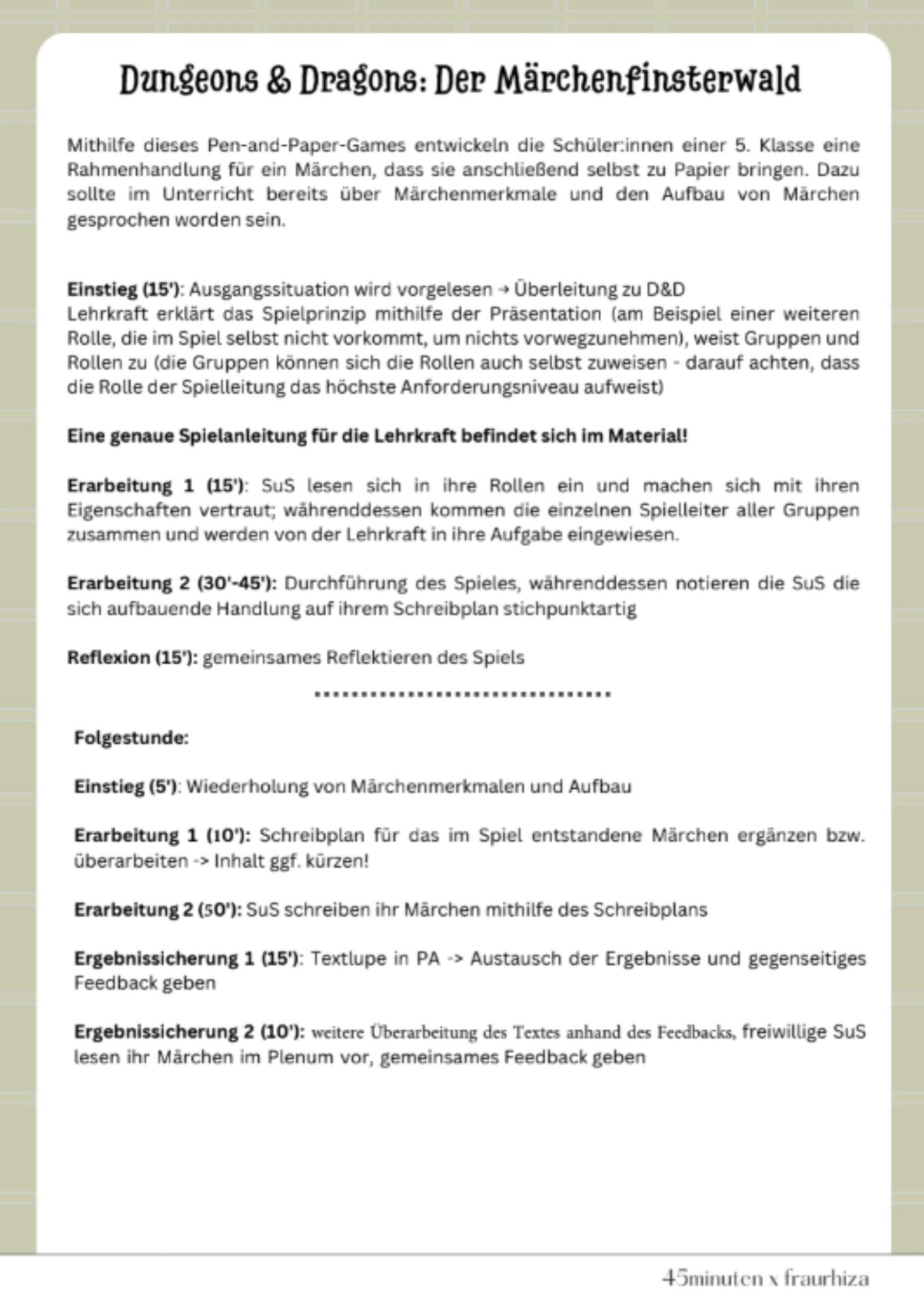 In dieser Sternstunde geht es um das Thema "Märchen". Das Unterrichtsmaterial wurde von einer Lehrkraft, wie Dir, ursprünglich für ihren eigenen Unterricht erstellt. Nach dem Upload auf unser Portal wurde es von uns redaktionell aufbereitet und geprüft. Falls Dir dennoch ein Fehler auffällt, gib uns gern Feedback über unsere transparenten Feedbackfunktion oder unser Ticket-System.