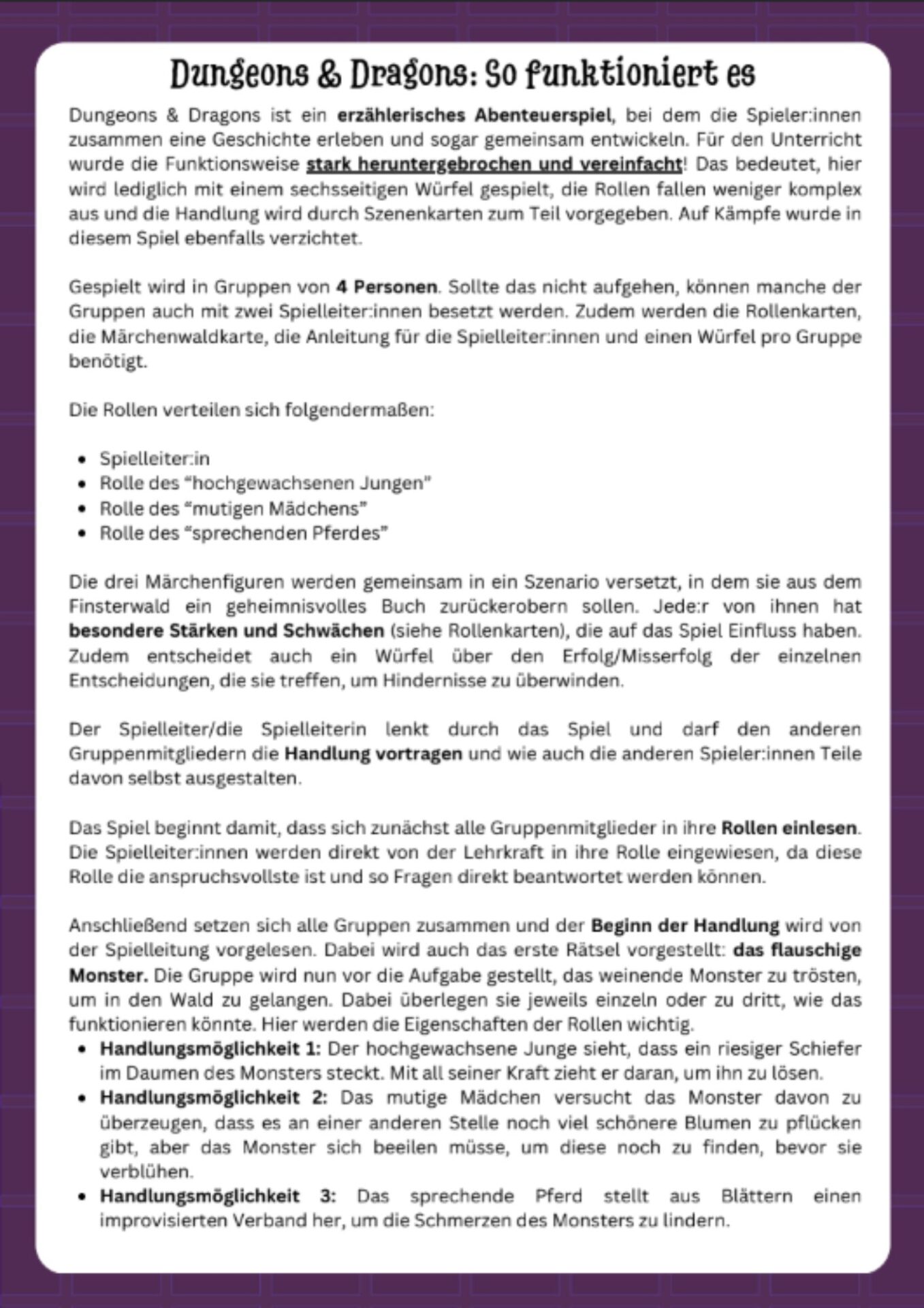 – Ausgangssituation wird vorgelesen → Überleitung zu D&D