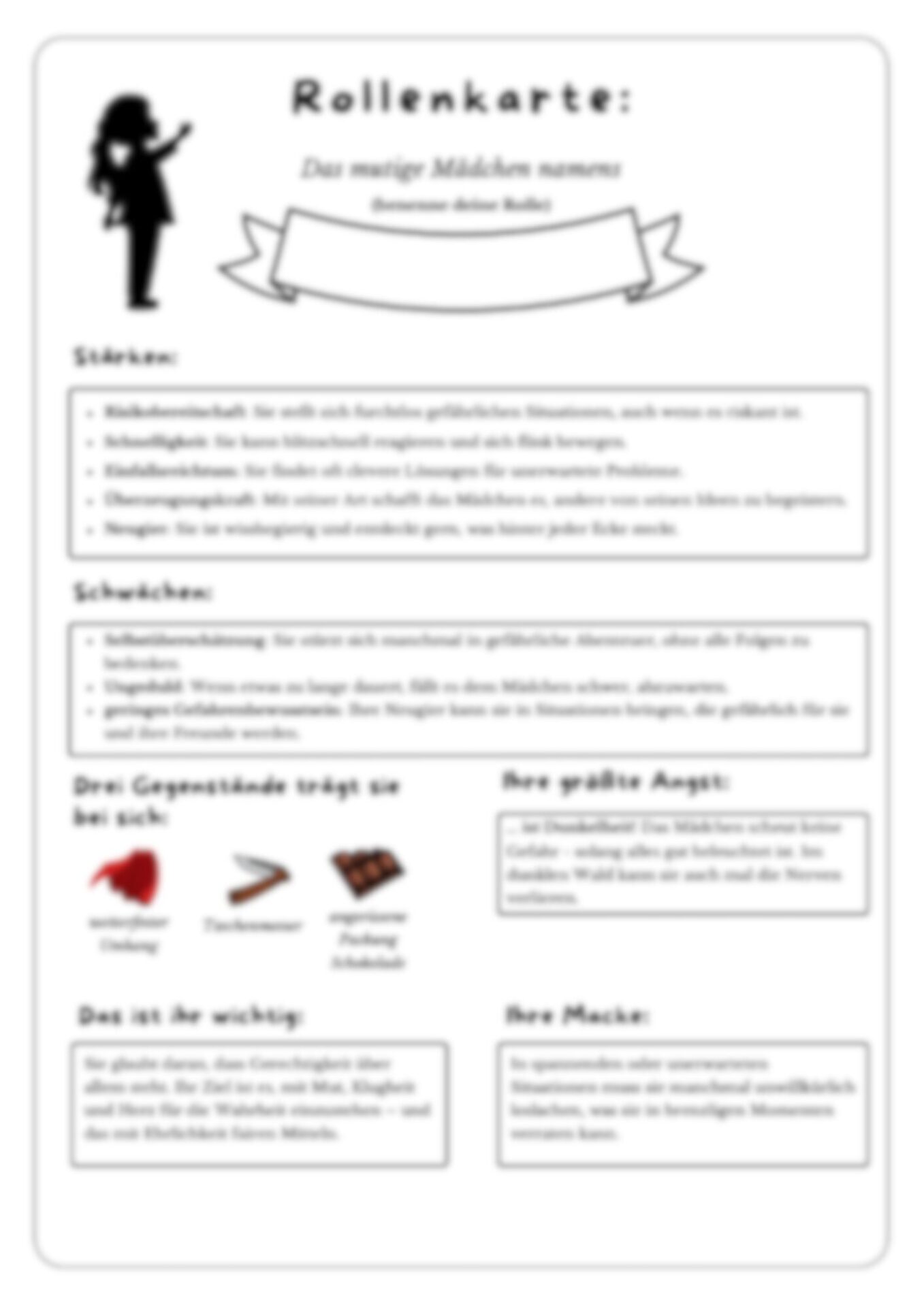 – Lehrkraft erklärt das Spielprinzip mithilfe der Präsentation (am Beispiel einer weiteren Rolle, die im Spiel selbst nicht vorkommt, um nichts vorwegzunehmen), weist Gruppen und Rollen zu (die Gruppen können sich die Rollen auch selbst zuweisen – darauf achten, dass die Rolle der Spielleitung das höchste Anforderungsniveau aufweist)