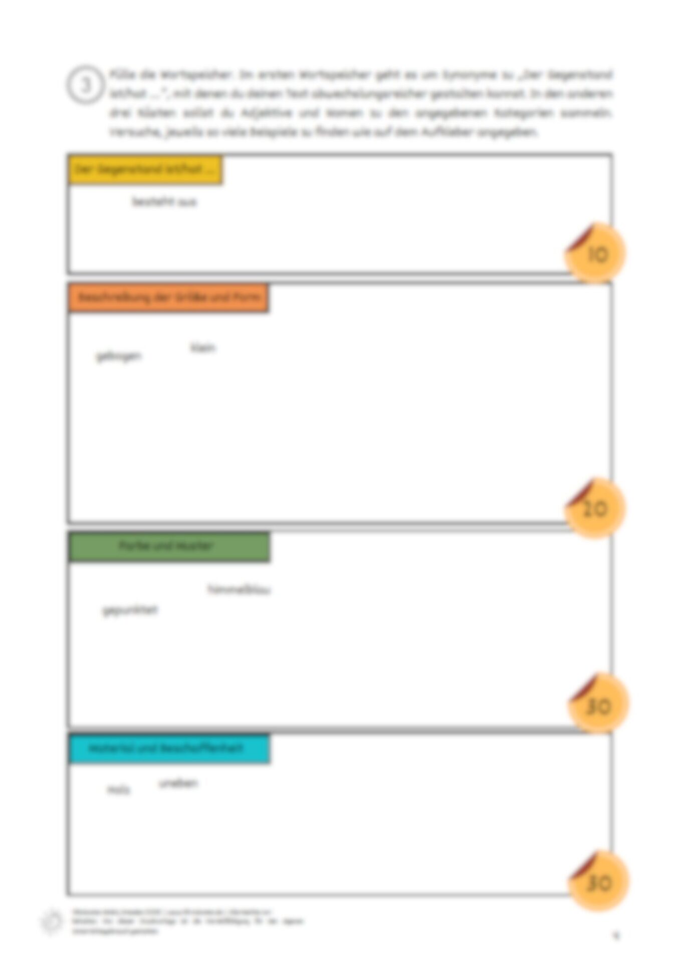 In dieser Einführungsstunde zum Thema „Beschreiben“ bearbeiten die Schüler*innen in Paar- oder Einzelarbeit Aufgaben zur Gegenstandsbeschreibung. Diese Stunde ist Teil der Unterrichtsreihe „Beschreiben“: