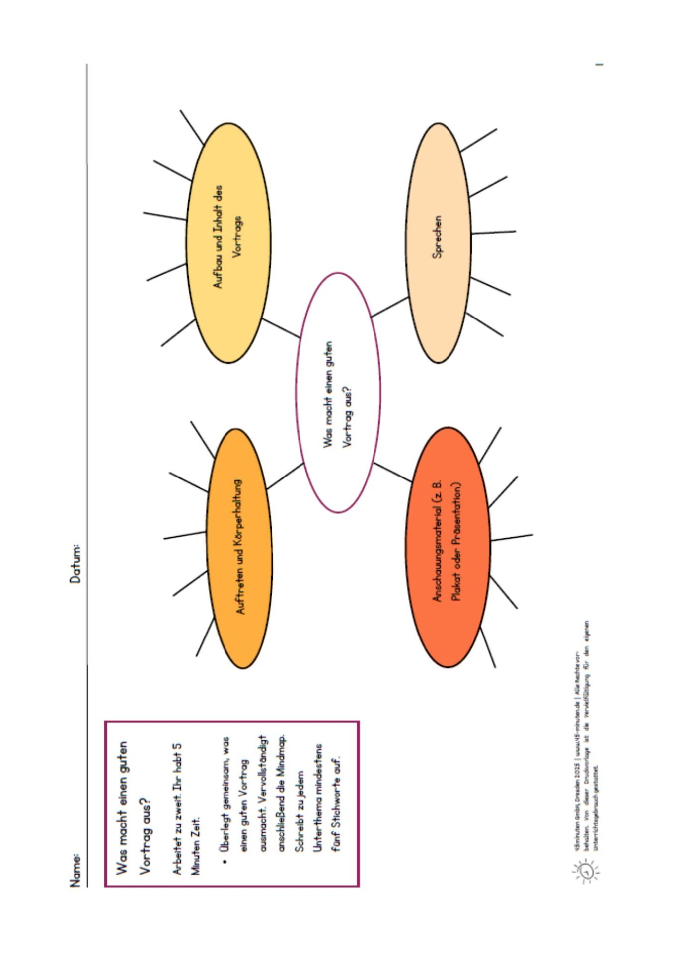 – Material: Arbeitsblatt mit Mindmap-Vorlage