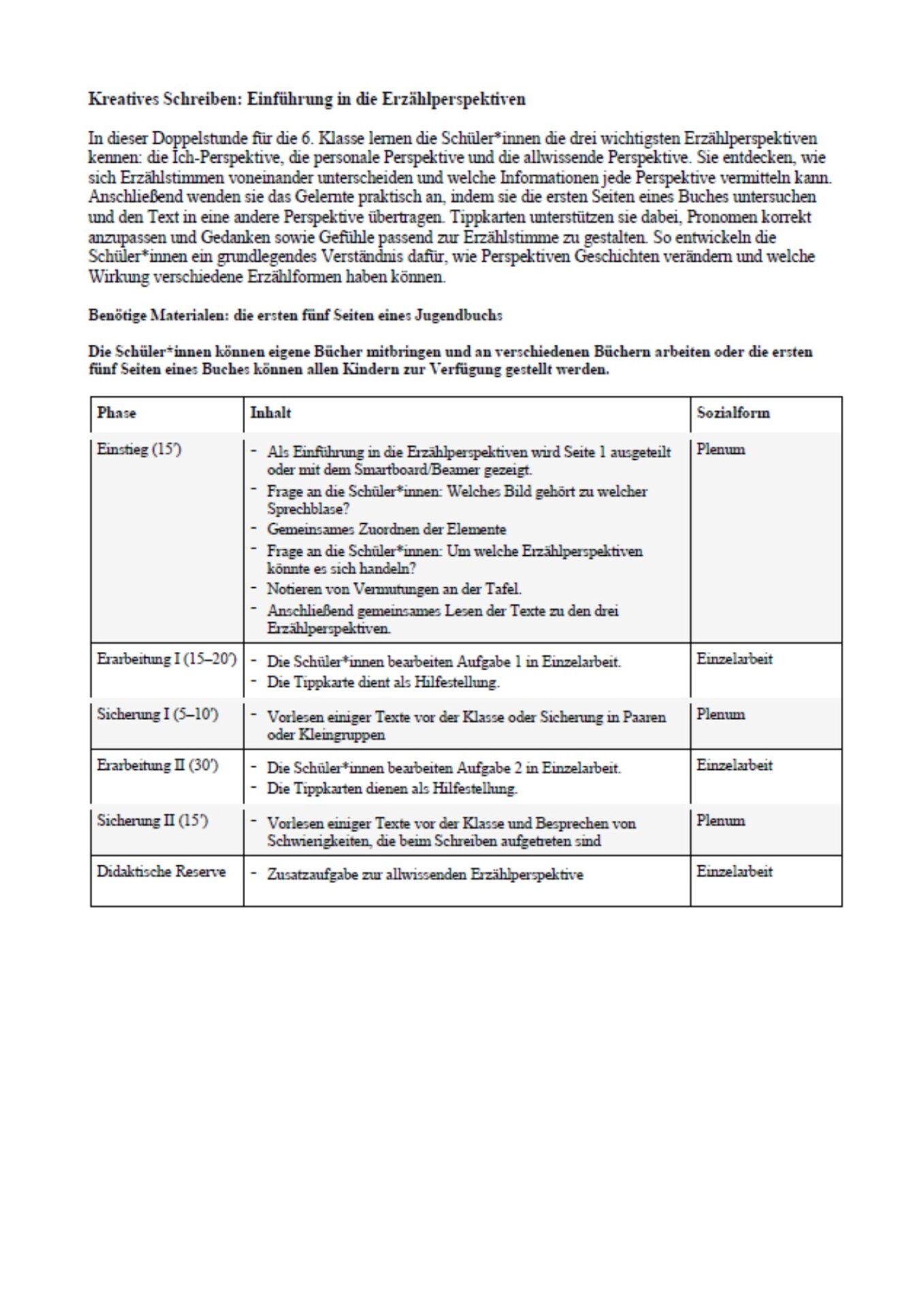 – Anschließend gemeinsames Lesen der Texte zu den drei Erzählperspektiven.