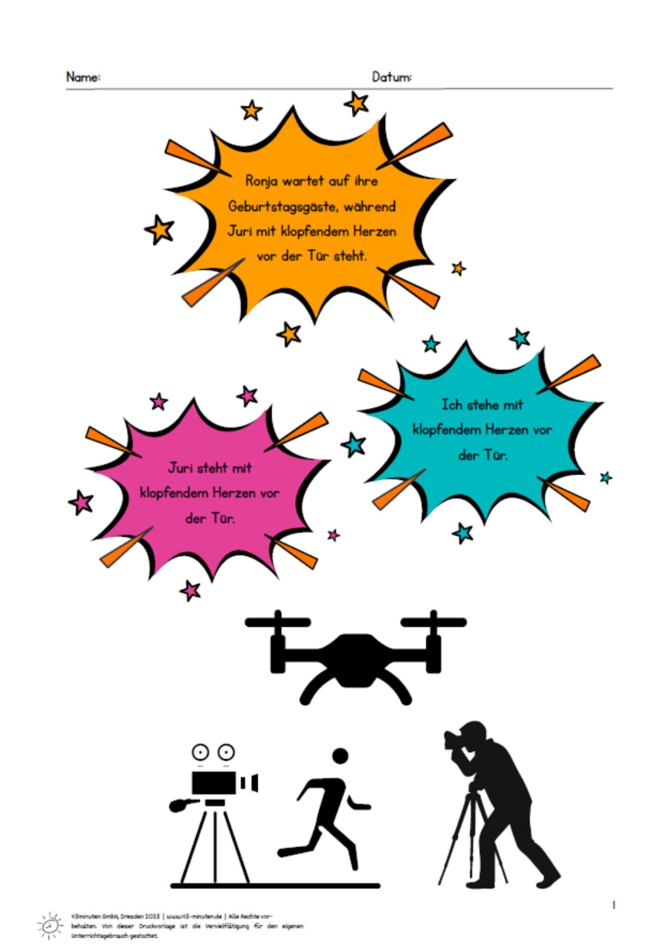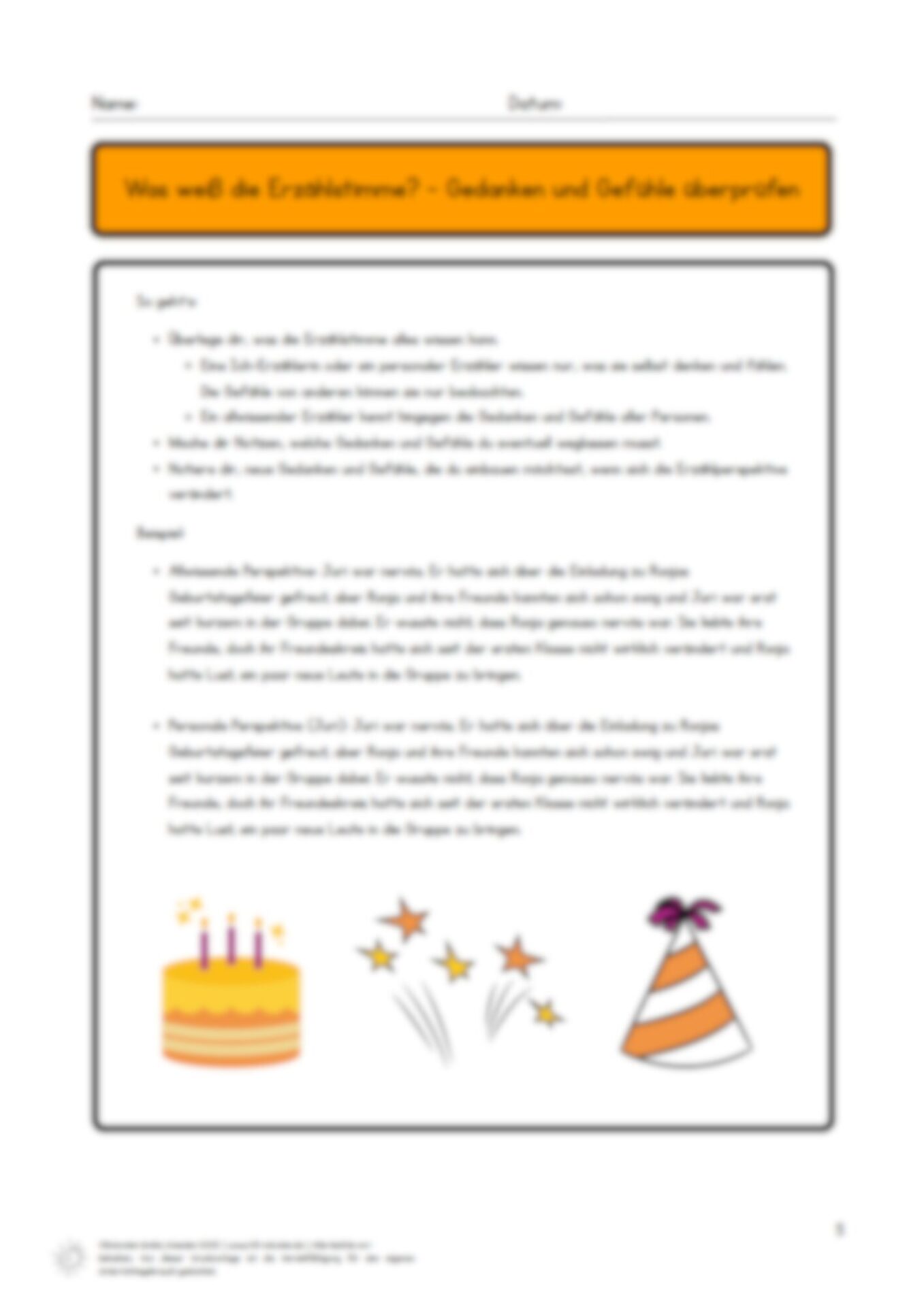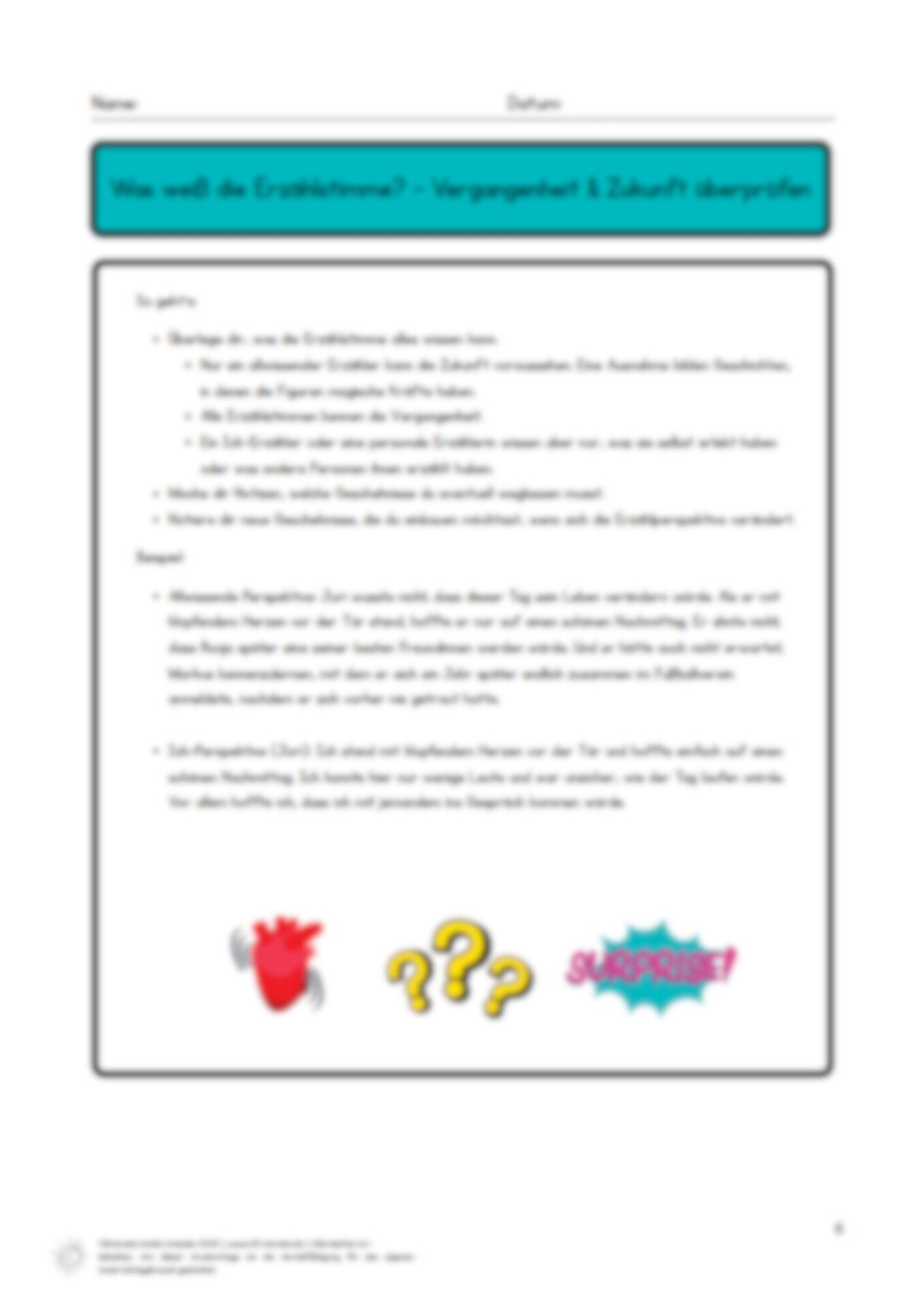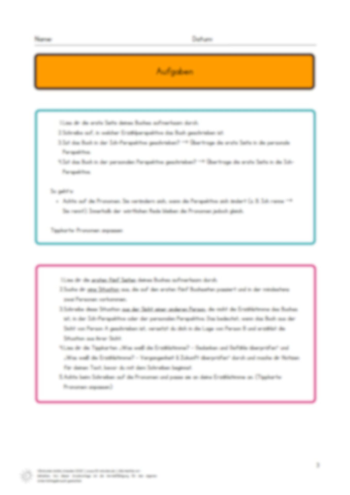 – Als Einführung in die Erzählperspektiven wird Seite 1 ausgeteilt oder mit dem Smartboard/Beamer gezeigt.
