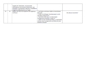 – „Ziel der Stunde ist es, das Geheimnis um die beiden verschwundenen Männer zu lösen. Dafür werdet ihr in Gruppen die Notizen von Berger in eine logische Reihenfolge bringen (Hinweis: Sie sind noch nicht sinnvoll geordnet). Formuliert anschließend einen Antwortsatz auf dem Arbeitsblatt. Vergesst nicht, eure Ergebnisse auch zu begründen.“
