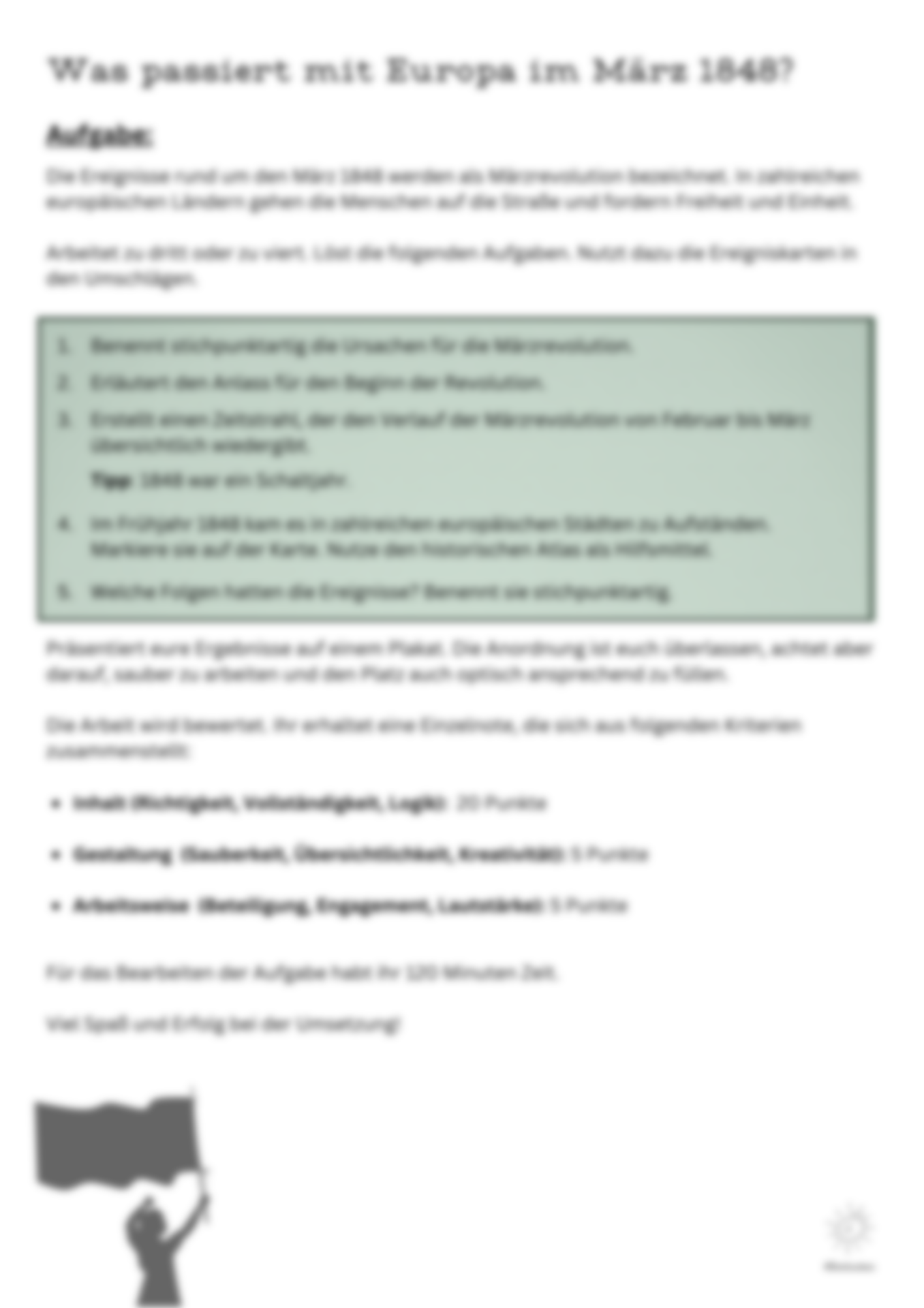 In dieser Sternstunde geht es um das Thema "„Geschichte“, Vormärz und 1848er-Revolution". Das Unterrichtsmaterial wurde von einer Lehrkraft, wie Dir, ursprünglich für ihren eigenen Unterricht erstellt. Nach dem Upload auf unser Portal wurde es von uns redaktionell aufbereitet und geprüft. Falls Dir dennoch ein Fehler auffällt, gib uns gern Feedback über unsere transparenten Feedbackfunktion oder unser Ticket-System.
