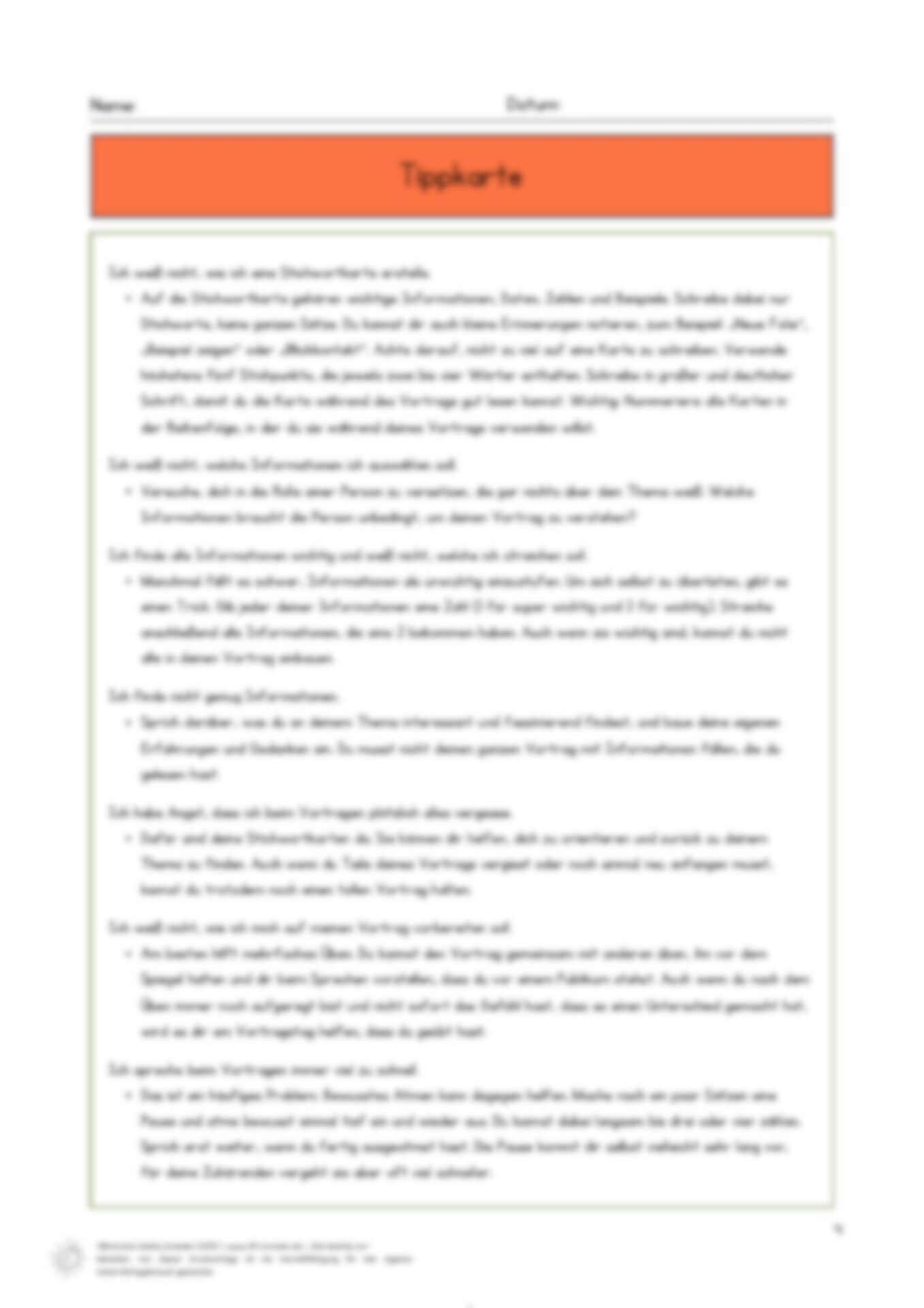 Hinweise bzw. Voraussetzungen:Für dieses Unterrichtsmaterial sollten zwei Doppelstunden eingeplant werden sowie weitere Zeit zum Halten der einzelnen Vorträge je nach Klassengröße: