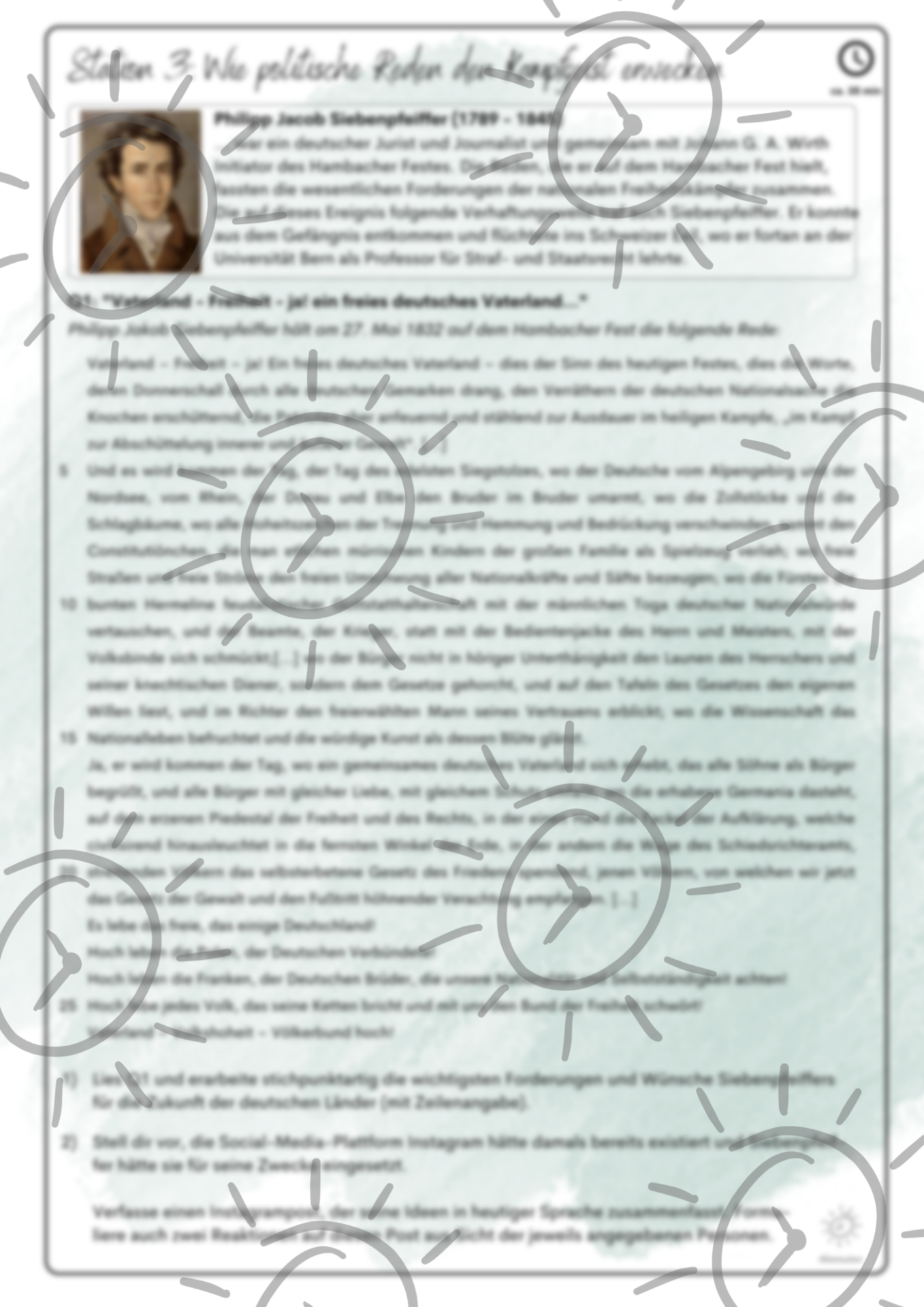 In dieser Sternstunde geht es um das Thema "„Geschichte“, Vormärz und 1848er-Revolution". Das Unterrichtsmaterial wurde von einer Lehrkraft, wie Dir, ursprünglich für ihren eigenen Unterricht erstellt. Nach dem Upload auf unser Portal wurde es von uns redaktionell aufbereitet und geprüft. Falls Dir dennoch ein Fehler auffällt, gib uns gern Feedback über unsere transparenten Feedbackfunktion oder unser Ticket-System.