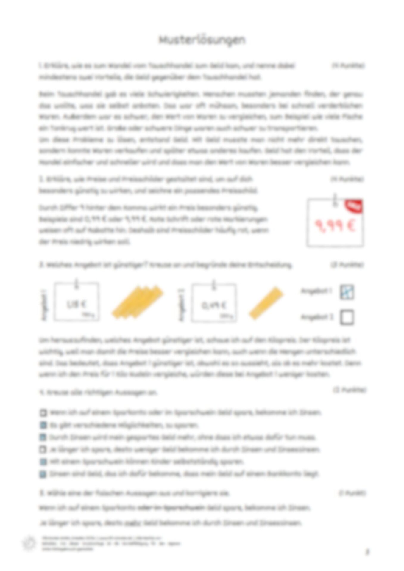 Mit diesen Teste-dich überprüfen die Schüler*innen ihr Wissen zum Umgang mit Geld. Sie wiederholen, was sie zu den Themen Entstehung des Geldes, Preise und Sparen gelernt haben, und wenden ihr Wissen in einem Fallbeispiel an. In der letzten Aufgabe reflektieren sie, was sie persönlich aus der Unterrichtsreihe mitgenommen haben. Die Lösungsblätter ermöglichen eine Bewertung durch die Lehrkraft oder eine eigenständige Kontrolle der Schüler*innen. Diese Stunde ist Teil der Unterrichtsreihe „Umgang mit Geld“: