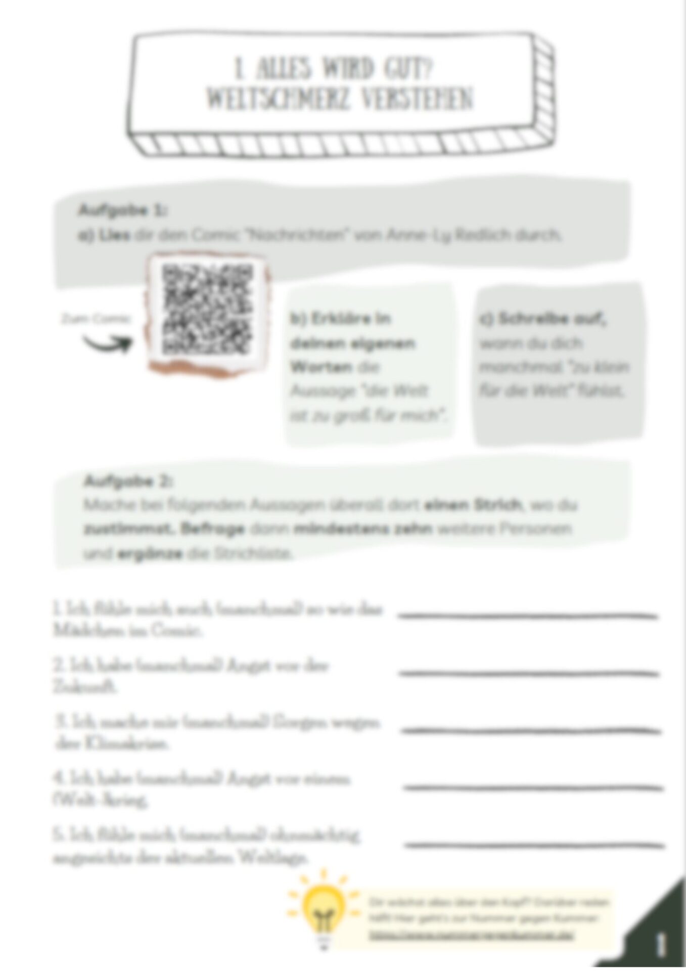 In dieser Sternstunde geht es um das Thema "Entscheidungen treffen, „Herausforderungen in einer globalen Welt“". Das Unterrichtsmaterial wurde von einer Lehrkraft, wie Dir, ursprünglich für ihren eigenen Unterricht erstellt. Nach dem Upload auf unser Portal wurde es von uns redaktionell aufbereitet und geprüft. Falls Dir dennoch ein Fehler auffällt, gib uns gern Feedback über unsere transparenten Feedbackfunktion oder unser Ticket-System.